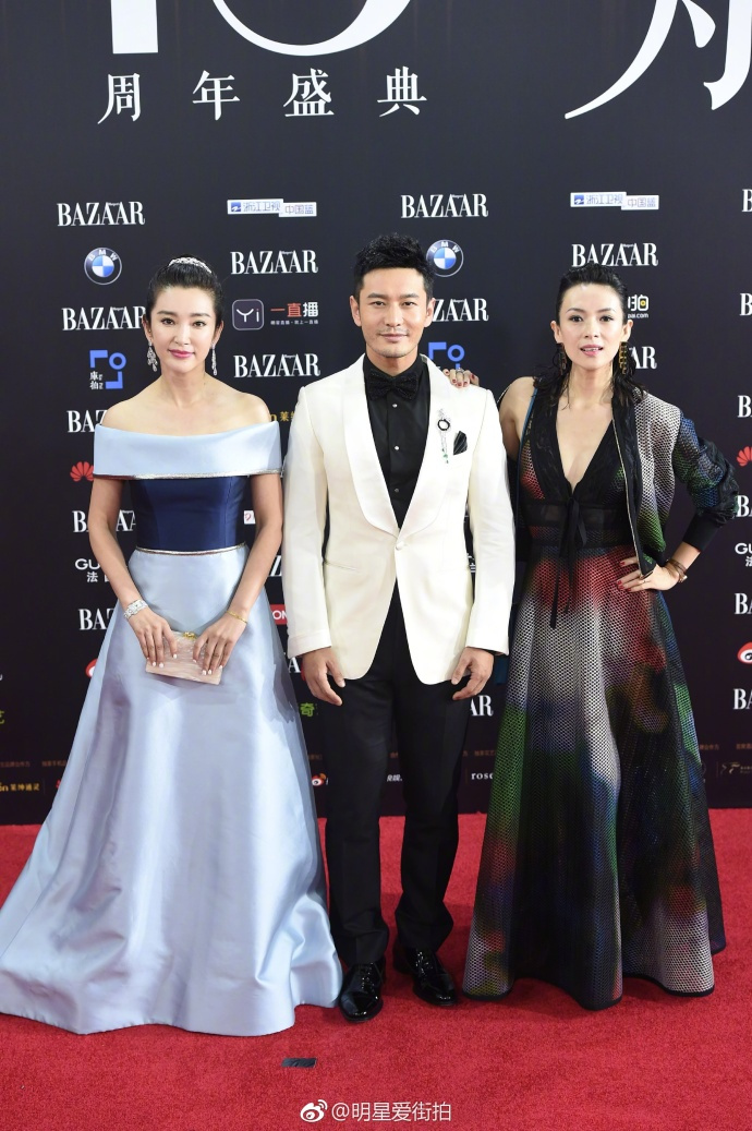 黃曉明一邊一個大花旦,“艷福不淺”啊!章子怡穿低胸網(wǎng)紋裙半露香肩展女王氣質(zhì),李冰冰頭戴王冠著一字肩湖藍公主裙走起甜美風(fēng),我說最佳男閨蜜一定要頒給教主,雖然這張圖把他拍成1米6。
