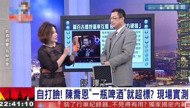 該警官在節(jié)目現(xiàn)場喝啤酒實(shí)測,首先喝完一罐330ml的啤酒,測得酒測值為0.08,接著喝完第2罐啤酒,酒測值也只到0.16,與陳喬恩所謂的一罐啤酒飆至0.67的數(shù)字相差甚遠(yuǎn),也讓主持人驚呼:“所以陳喬恩就在說謊嘛!”