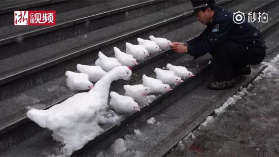 保安下雪后堆了個"動物園" 萌得心都化了