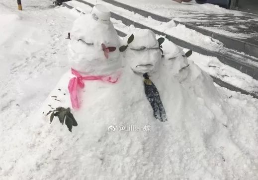 網(wǎng)友:地域限制了保安大哥的才華 要是在東北那可了不得了 今天和我朋友堆了四個小時 給你們看大東北的馬路邊上 ………………就收獲了一波波野生藝術(shù)家 人生如戲,全靠演技 堆這些雪人的