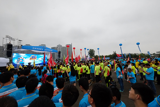 經(jīng)過了半夜的狂風(fēng)暴雨后,早上8點,鄭東新區(qū)的空氣格外清新!雖然活動9點開始,但此時,cbd文化廣場已經(jīng)聚集了好幾千名參與者,他們有的是熱衷于環(huán)保的市民,有的是健身、跑步的愛好者,也有的學(xué)校、單位集體組織了方陣,提前趕到現(xiàn)場參加活動。