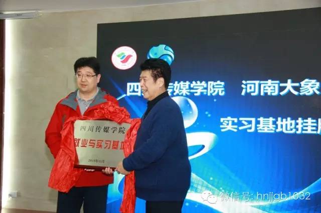 四川傳媒學(xué)院副院長王雷、河南大象融媒體集團(tuán)副總裁李強(qiáng)為“四川傳媒學(xué)院·大象融媒就業(yè)實(shí)習(xí)基地”掛牌。
