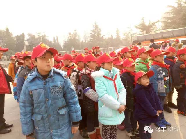 脖子上戴著紅領(lǐng)巾,頭上頂著小紅帽,排著整齊的隊(duì)伍——出發(fā)!