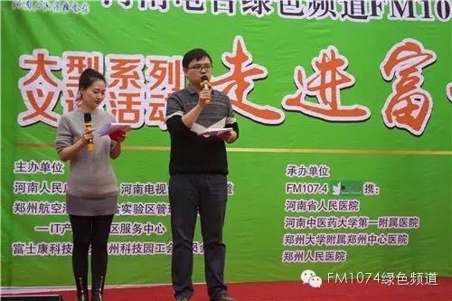 河南電臺(tái)綠色頻道FM107.4《健康河南》節(jié)目組派出柳青、肖震主持當(dāng)天的義診活動(dòng)。