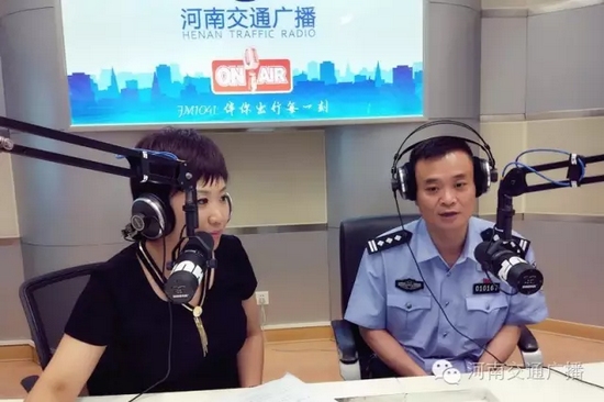 6月16日上午,鄭州市公安局交巡警支隊竇立勇支隊長帶領車管所、交通科研所、法制、交通、事故等科室負責人做客河南交通廣播《南方談交通》節(jié)目,與廣大車友就交通出行話題實時互動。