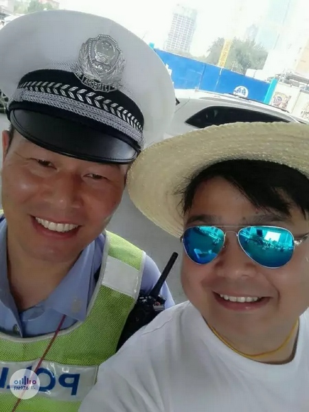 交警楊華民甚至來不及吃一口我們切好的西瓜