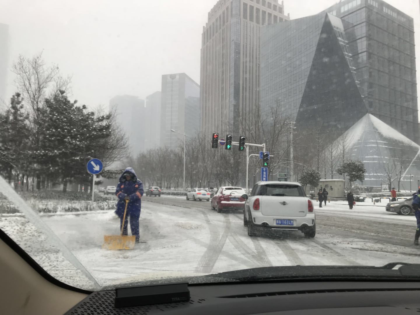 鄭州機(jī)場緊急啟動除雪保障預(yù)案,機(jī)場各崗位徹夜未眠連續(xù)工作,對飛機(jī)跑道、滑行道、停機(jī)坪和對機(jī)場地面交通道路進(jìn)行撒鹽、掃雪等一系列除冰雪保障工作,以保障廣大旅客安全出行。只見大的除冰機(jī)上寫著:雪不凈冰不化我們不休息!
