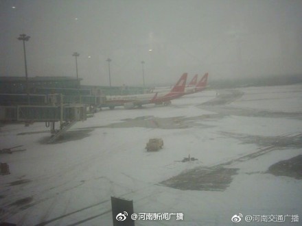目前,鄭州機(jī)場暫時符合起降標(biāo)準(zhǔn),但是運(yùn)行效率受到影響,因持續(xù)降雪,飛機(jī) 積冰現(xiàn)象嚴(yán)重,目前已有四個航班出港,七個航班進(jìn)港,航班延誤10多個。