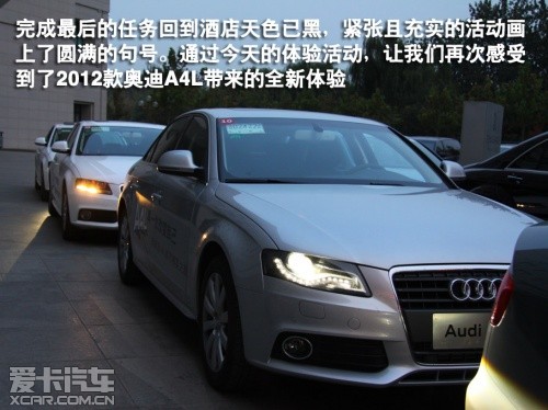 結(jié)語:在此次活動中,讓我們再次感受到了2012款奧迪A4L帶來的全新體驗,尤其是一些實用性配置的增加,讓駕駛者和乘坐者充分感受到了A4L帶來的舒適以及便捷。此外,2012款奧迪A4L在價格不變的基礎(chǔ)上增加了這些實用性配置,從而進一步提升了其性價比。