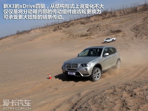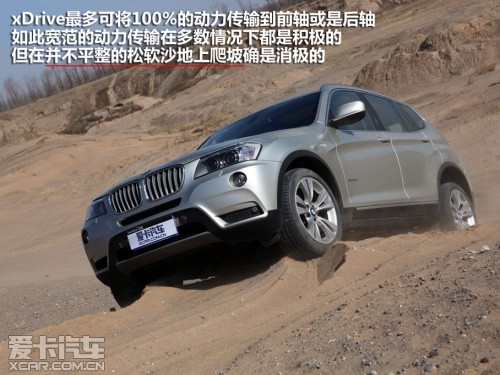 搭載3.0T發(fā)動機(jī)的寶馬X3,很顯然比Q5更為“肌肉”,但面對松軟的沙坡它也清楚的知道:光有腿部力量是遠(yuǎn)遠(yuǎn)不夠的,還必須要結(jié)合上肢力量才有可能登頂,此刻,xDrive系統(tǒng)起到了決定性的作用。