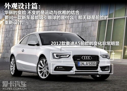 2012款?yuàn)W迪A5屬于中期改款車(chē)型,在外觀、內(nèi)飾、動(dòng)力和底盤(pán)上都有較為明顯的變化。依據(jù)之前的消息,新款車(chē)型將于今年9月在海外開(kāi)始接受預(yù)定。近日,2012款?yuàn)W迪A5在國(guó)內(nèi)的測(cè)試諜照也被首次曝光,預(yù)計(jì)新車(chē)不久就將引入國(guó)內(nèi)市場(chǎng)。(諜照來(lái)源:騰訊汽車(chē))