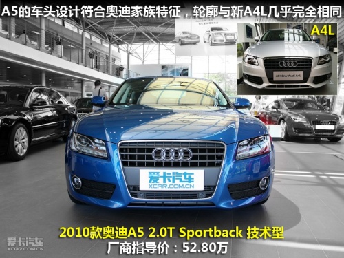 如果不仔細(xì)看,你將很難把它和新A4L區(qū)分開,它的車頭部造型幾乎與A4L完全相同,車身尾部也僅僅是尾燈與A4L略微不同。如果不是尾部的A5字樣標(biāo)識,很多人都可能會“看花眼”。事實上,奧迪A5 Sportback的車身尺寸也與歐版奧迪A4較為接近。