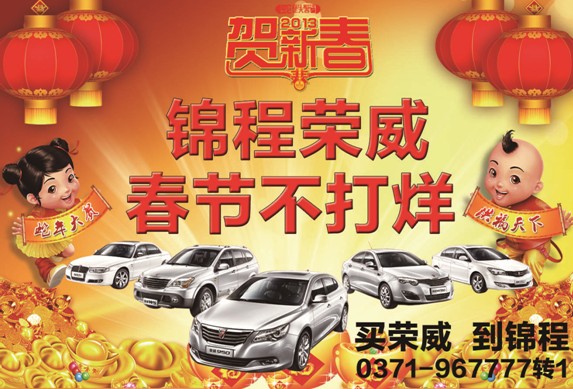 新春佳節(jié)到來之際,小編從河南錦程汽車銷售服務(wù)有限公司了解到,河南錦程榮威春節(jié)不打烊,和您一起過共度佳節(jié)。春節(jié)期間2月9日(除夕)-16日(初七),凡購車客戶均可獲得錦程送出的新春大禮包——年貨。錦程榮威推出了易享貸,更有超實惠兩年半零利息上汽金融政策,助您開車過年。更多優(yōu)惠車型請咨詢:0371--967777轉(zhuǎn)1.