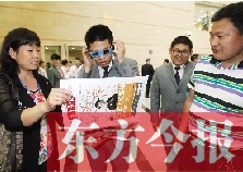 “為啥還配發(fā)有眼鏡?”不少人對東方今報發(fā)行員工手中的眼鏡比較感興趣。當(dāng)?shù)弥獔蠹埵?D的,戴上眼鏡,“樓”就站在報紙上時,不少客商紛紛戴上眼鏡體驗一把。