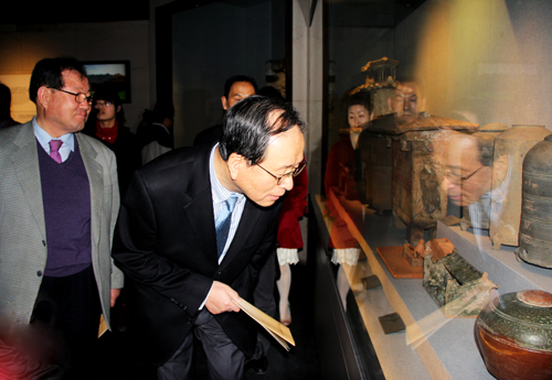 韓國朋友相繼參觀了河南博物院的《中原古代文明之光》基本陳列、《中原楚系青銅藝術館》、《河南古代玉器》、《河南明清館》等專題陳列的多個展覽。韓國朋友們精細地觀賞博物院陳展的文物,由衷感嘆中華民族祖先的智慧和博物院的陳列水準。曾80多次訪華、第64次來河南的“中國通”許由先生頗為內行的提問令講解員和陪同參觀的中國人員刮目相看。中韓建交的20多年來許先生一直在為兩國及兩國人民的友誼盡其所能地做著工作,他曾多次率團訪華,此次又為河南帶來了原首爾特別市瑞草區(qū)廳長趙南浩、原空軍士官學校校長吳昌煥和金星綜合電機株式會社會長等新老朋友。
