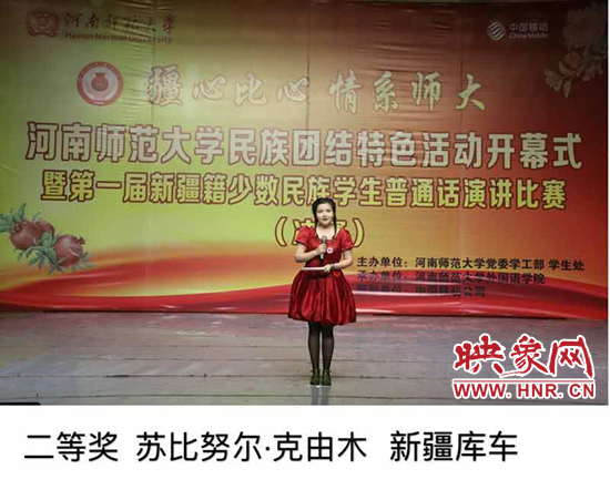 映象網(wǎng)訊 11月27日,由河南師范大學(xué)黨委學(xué)工部、學(xué)生處主辦、外國(guó)語(yǔ)學(xué)院承辦的河南師范大學(xué)民族團(tuán)結(jié)特色活動(dòng)暨第一屆新疆籍少數(shù)民族學(xué)生普通話(huà)演講比賽在帕瓦羅蒂音樂(lè)廳舉行。