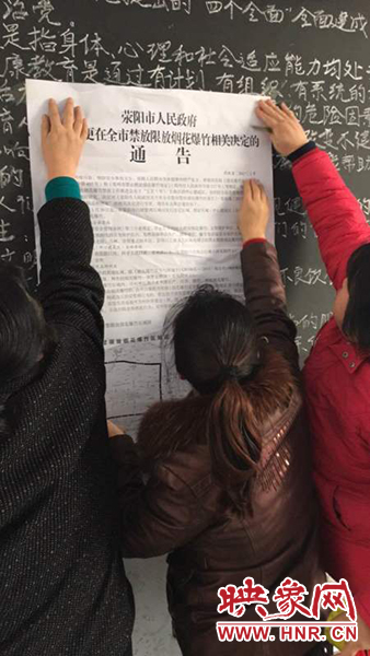 映象網(wǎng)訊(記者 王文凱 通訊員 李文利 趙露瀅)新春佳節(jié)將至,為減少環(huán)境污染,切實(shí)保障轄區(qū)人民群眾身體健康和財(cái)產(chǎn)安全,預(yù)防安全事故發(fā)生,滎陽市索河辦堅(jiān)決落實(shí)上級(jí)禁限放煙花爆竹有關(guān)會(huì)議精神,將禁限放煙花爆竹宣傳工作作為當(dāng)前重中之重,采取五項(xiàng)措施,全力以赴做好禁限放宣傳工作。