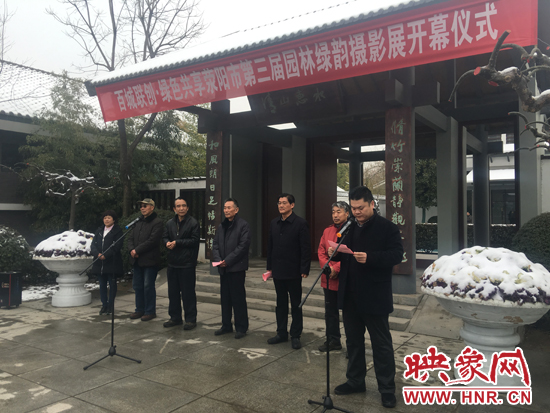 映象網(wǎng)訊 22日上午10時,由鄭州市風(fēng)景園林協(xié)會園林文化產(chǎn)業(yè)分會、滎陽書畫院主辦,滎陽市攝影家協(xié)會承辦的“百城聯(lián)創(chuàng).綠色共享”滎陽市第三屆園林綠韻攝影展在滎陽植物園內(nèi)開幕。原滎陽市人大副主任王海林、原市政協(xié)副主席閏紅舉、市攝影協(xié)會名譽(yù)主席李軍嶺、市園林中心主任李向陽、市園林中心副主任梅慧君以及市攝影協(xié)會理事會員、攝影愛好者們參加了開幕式。