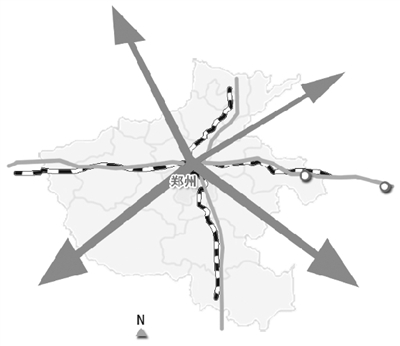 “米”字形快速鐵路網(wǎng),是國務(wù)院批復(fù)《中原經(jīng)濟(jì)區(qū)規(guī)劃》和《鄭州航空港經(jīng)濟(jì)綜合實驗區(qū)發(fā)展規(guī)劃》明確的重大工程,具體就是在京廣和徐蘭“十”字形快速客運通道基礎(chǔ)上,建設(shè)鄭州至萬州、鄭州至濟(jì)南、鄭州至合肥、鄭州至太原的高速鐵路。根據(jù)鄭州都市區(qū)整體規(guī)劃,未來將形成以鄭州為中心的“米”字形高鐵輻射網(wǎng)絡(luò),實現(xiàn)北京、西安、武漢等30多個城市的“3小時經(jīng)濟(jì)圈”。