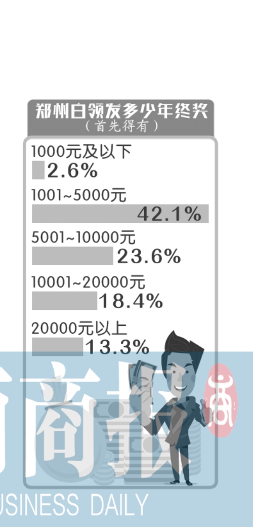 智聯(lián)招聘的調查顯示,參與調查的鄭州白領中有35.8%表示能夠拿到2016年年終獎,11.1%的白領表示企業(yè)承諾年后發(fā)放??傮w來看,能拿到2016年年終獎的鄭州白領占比超四成。
