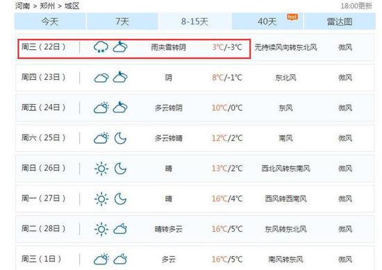 鄭州未來(lái)一周天氣預(yù)報(bào):