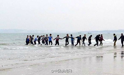 12月7日,河北秦皇島一黃衣女子獨(dú)自向海里走去,就快被海水淹沒。燕山大學(xué)18名學(xué)生頂著寒風(fēng),在冰冷的海水中手拉手,連成一條三四十米長的生命鎖鏈,將女子被攙扶上岸,一名男子還將自己的棉衣披在她身上。為這些勇敢的大學(xué)生們點(diǎn)個(gè)贊!