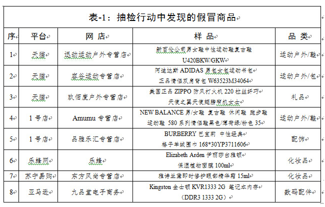 工商總局公布“雙11”期間對(duì)電商平臺(tái)促銷商品的抽檢結(jié)果:已確認(rèn)8批次樣品為假冒商品,天貓3個(gè),1號(hào)店2個(gè),樂蜂網(wǎng)、蘇寧易購、亞馬遜各1個(gè);7批次樣品涉嫌假冒商品正在分析中。另有7批次樣品質(zhì)量不合格或標(biāo)簽不合法。