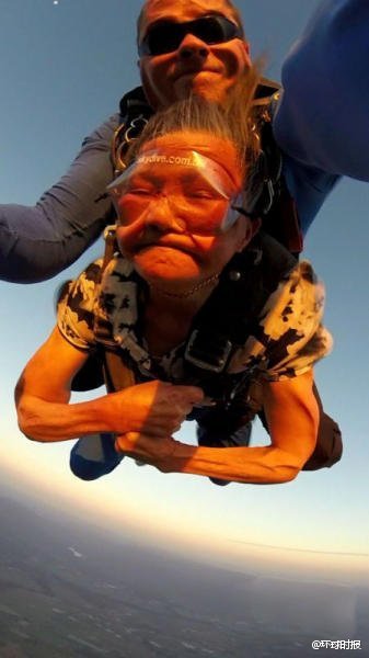總能在新聞中看到高齡老人玩?zhèn)€跳傘啥的極限運(yùn)動(dòng),但這次登場的是來自中國湖北的閔奶奶!她去年到定居澳洲的兒子處探親旅游時(shí),被項(xiàng)目吸引報(bào)名,事后興奮不已,也驚爆了在場游客。給老奶奶點(diǎn)個(gè)贊!網(wǎng)友:在中國估計(jì)沒人敢?guī)鎯簙