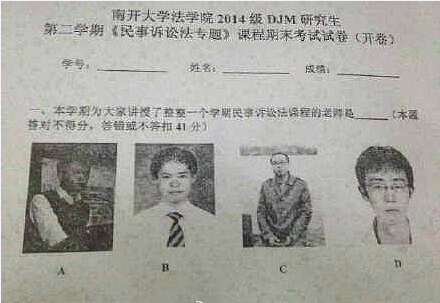 南開大學法學院某科目的期末試卷被學生上傳,瞬間引爆學生圈。同學們表示:“內(nèi)傷了”“臉盲怎么辦”“想想真的很有道理啊!”…也有同學吐槽,“老師您用的是大學時候的證件照,現(xiàn)在不長這樣了…”這還真是一個刷臉的時代啊