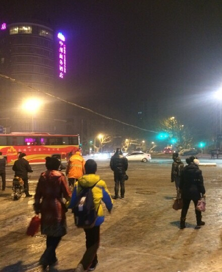 雪停了,但是路上的雪被車碾軋之后比較光滑。@大河寒江雪 :南陽路快速公交站,等了半小時沒見一輛公交。@清qing茶:桐柏路農(nóng)業(yè)路交叉口已經(jīng)有兩輛公交車因路滑橫到馬路上了??傊?,出門不管是開車還是騎車還是步行都要千萬小心!遲到不要緊,安全才第一!