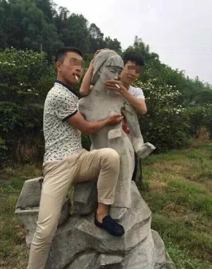 四川宜賓趙場佛現(xiàn)山景區(qū)花開正艷,卻出現(xiàn)了與美景相悖的不文明行為。兩男子近日對一婦女雕像又是摟抱又是摸胸。據(jù)了解,雕像是兩年前計生文化進(jìn)景區(qū)時設(shè)置的。目前,拍攝時間和兩男子身份尚不明確??达L(fēng)景還是煞風(fēng)景?