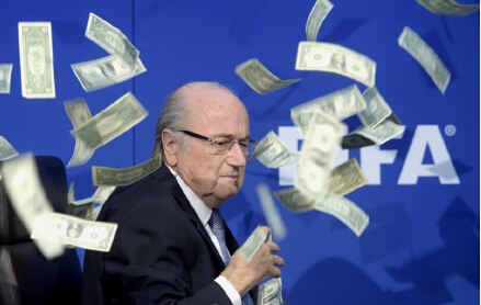 國際足聯(lián)召開新聞發(fā)布會,宣布新主席選舉將在2016年2月26日舉辦,不過發(fā)布會發(fā)生一個插曲,喜劇演員李-尼爾森突然闖入,他向布拉特不斷揮舞鈔票,并且諷刺道,”韓國拿下2026年世界杯的錢夠了吧!“隨后他把錢全都扔在了布拉特的臉上,后者一臉驚慌。