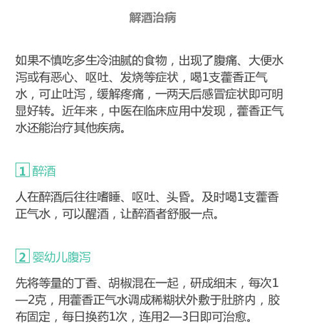 夏天炎熱,容易中暑,很多家庭常備藿香正氣水來解暑。除了解暑效果以外,藿香正氣水還有很多你意想不到的功效。外敷去暑、巧治皮膚病、解酒、預(yù)防暈車、緩解嬰兒腹瀉......