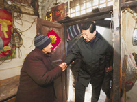 12月29日至30日,中共中央總書記、中央軍委主席習近平在河北省阜平縣看望慰問困難群眾。這是習近平在龍泉關(guān)鎮(zhèn)駱駝灣村到困難群眾唐榮斌家看望。 新華社記者 蘭紅光攝