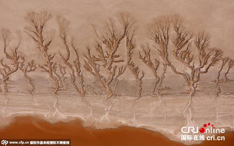 2015年6月5日消息,美國(guó)加州莫哈韋沙漠,這些照片看起來像是拍了森林中的一排樹,但事實(shí)上它們是干涸湖底的紋路。這種紋路足足綿延3英里。飛行教員Jassen Todorov在3000英尺的空中拍下了這組照片。圖片來源:CFP