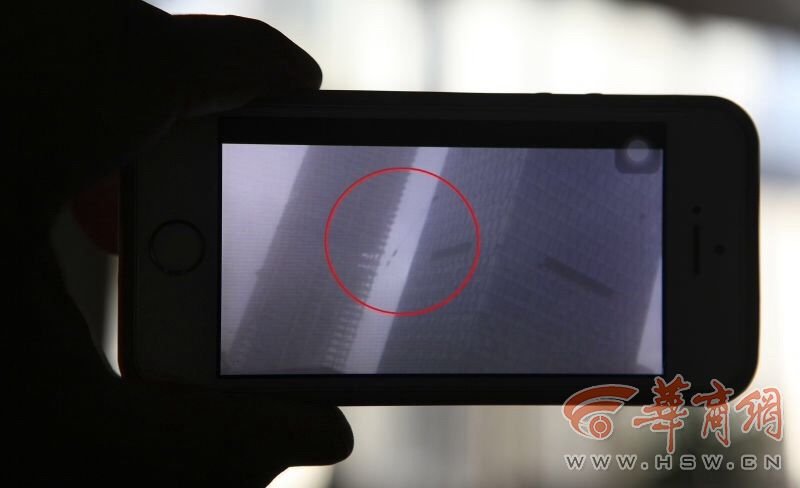 事發(fā)大樓外墻面現(xiàn)兩窟窿 周?chē)醒E