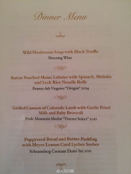 【白宮國(guó)宴菜單提前曝光】黑松露野生菌湯+黃油煮龍蝦菠菜+香菇韭菜米線(xiàn)卷+科羅拉多烤羊肉配奶煎大蒜+紹興黃酒……這樣的搭配怎么樣?(溫憲、張朋輝、李博雅)