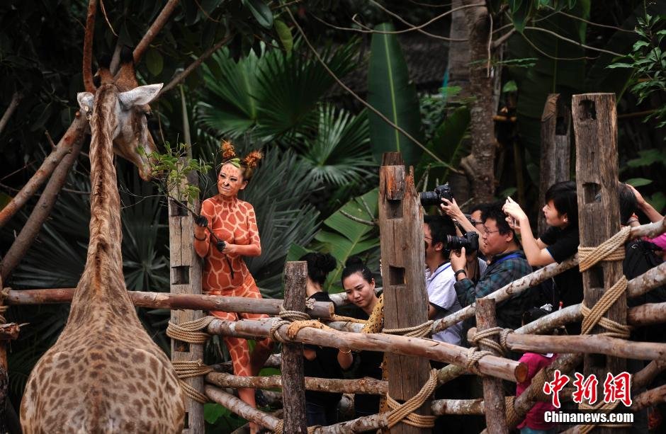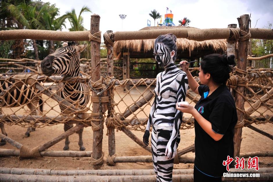 據(jù)悉,三亞彩色動物園舉辦此次美女人體彩繪活動,旨在傳播愛護動物、尊重生命以及人與動物和諧共處的理念,讓更多的人了解并參與到保護動物的隊伍中來。 陳超 攝
