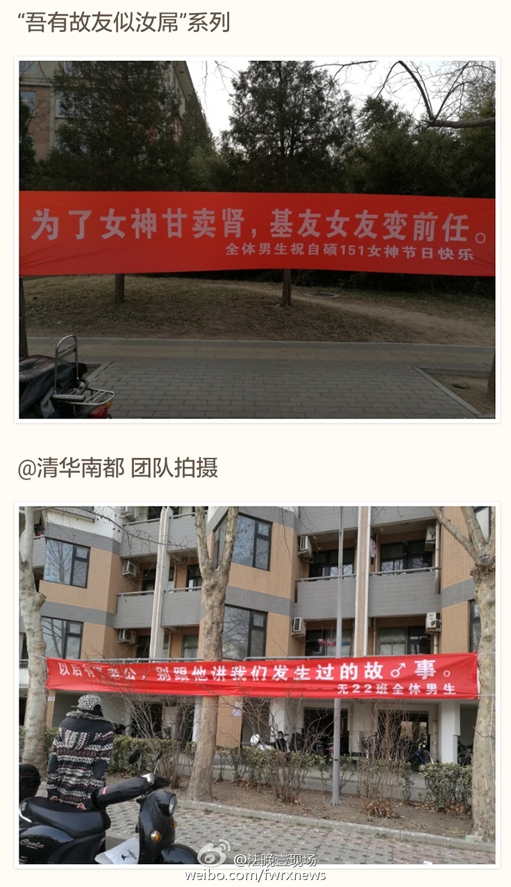 清華大學(xué)懸掛橫幅喜迎3.7女生節(jié)——文科生實在看不懂理工科的公式。