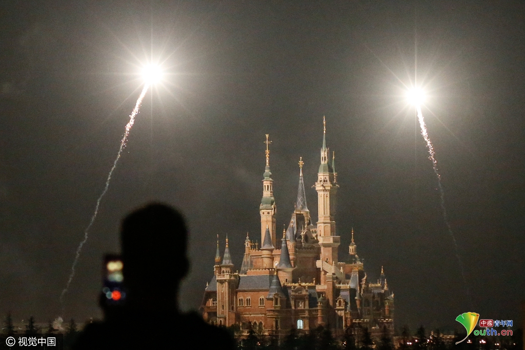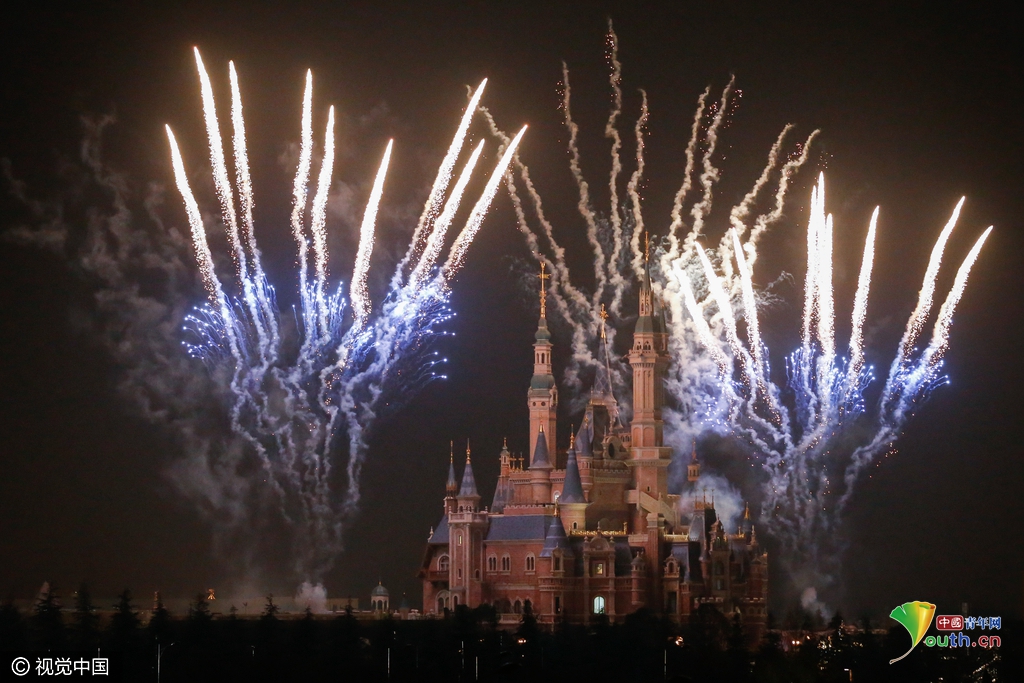2016年3月28日晚,上海迪士尼樂園進(jìn)行了第一次煙花試放。晚上9時許,兩道明亮的煙火在人們的歡呼中劃破天際。在隨后的27分鐘內(nèi),10余組姿態(tài)各異的煙火在空中依次綻放,萬千煙花“噴薄”而出,迪士尼城堡在煙火的照射下清晰可見。