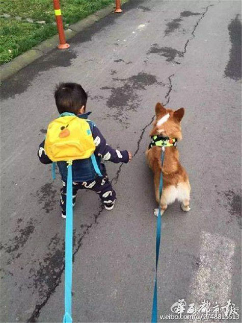 “每天都牽了繩的,就今天早上鬼使神差沒有拉繩子,就出了這種事。”對(duì)李女士一家來說,TOTO的死是一個(gè)巨大的悲痛,“我是懷孕的時(shí)候養(yǎng)的TOTO,懷孕生子都沒有把它送過人。它是和我兒子一起長大的?!眻D為TOTO和小主人的照片。