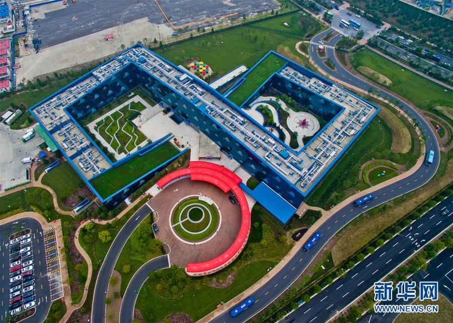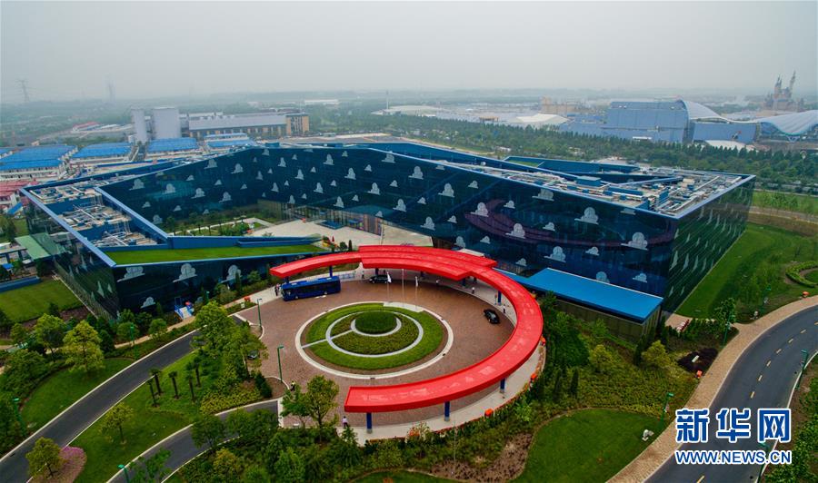 5月15日從空中俯瞰上海迪士尼玩具總動員酒店。當日,上海迪士尼主題酒店之——玩具總動員酒店大堂、廣場、餐廳、度假區(qū)短駁車等區(qū)域及設施開始內(nèi)部測試。這家共有800個房間的主題酒店將于6月中旬正式迎客。新華社發(fā)(鈕一新 攝)