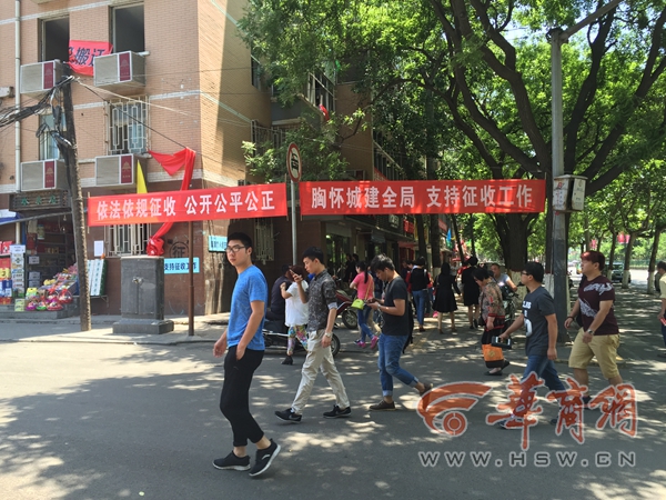 5月24日上午,華商網(wǎng)記者來到網(wǎng)友反映的紅會路附近,此處位于長安路沿線,共有四棟老式樓房面臨拆遷,居民樓的墻面上刷著黑色的“征”字,到處懸掛著拆遷宣傳橫幅。