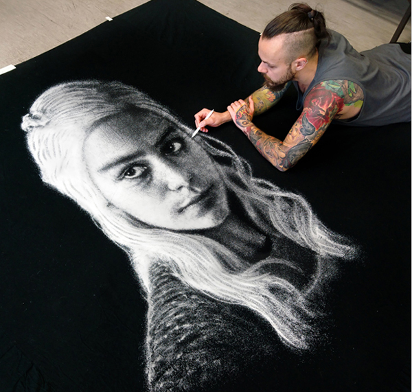 他是27歲的克羅地亞小哥Dino Tomic,與眾不同的是,他最近的畫(huà)原料是鹽。對(duì),就是廚房里再普通不過(guò)的食用鹽。