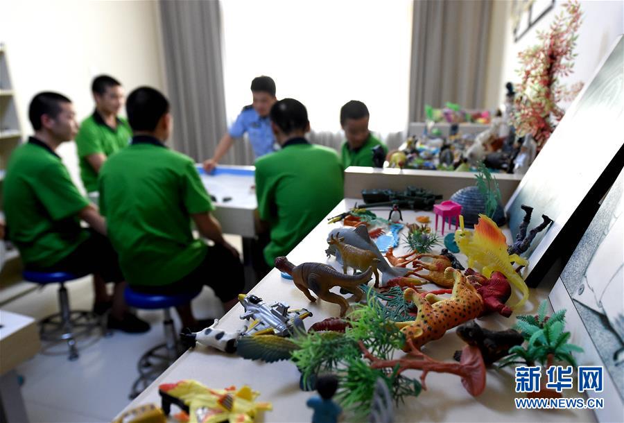 6月22日,河南省未成年人強(qiáng)制隔離戒毒所內(nèi)的戒毒人員在心理治療室內(nèi)做沙盤游戲。 新華社記者 李安 攝