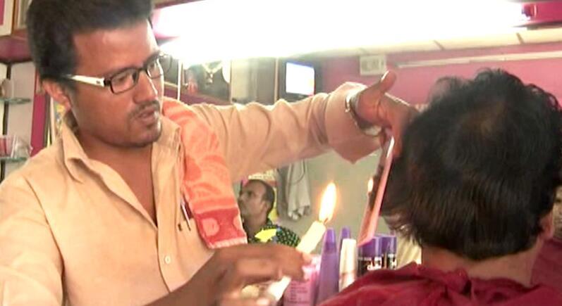 2016年11月1日報道(具體拍攝時間不詳),印度卡納塔克邦古爾伯加,28歲的DasharathKumar展示自己的獨門絕技——用蠟燭理發(fā)。