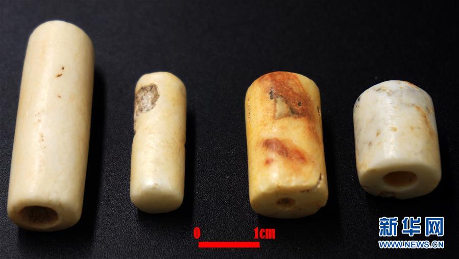 這是寧夏青銅峽鴿子山遺址出土的方解石穿孔裝飾品(資料照片)。