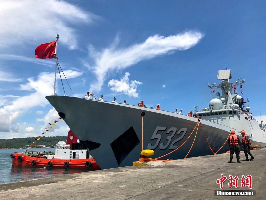 4月30日,由導(dǎo)彈驅(qū)逐艦長春艦、導(dǎo)彈護(hù)衛(wèi)艦荊州艦和綜合補(bǔ)給艦巢湖艦組成的中國海軍艦艇編隊(duì)抵達(dá)菲律賓南部達(dá)沃市訪問,受到熱烈歡迎。這支艦艇編隊(duì)4月23日從上海黃浦江畔啟航,將赴亞洲、歐洲、非洲和大洋洲20余個國家進(jìn)行友好訪問,菲律賓是首站。圖為荊州艦靠岸。 中新社記者 張明 攝