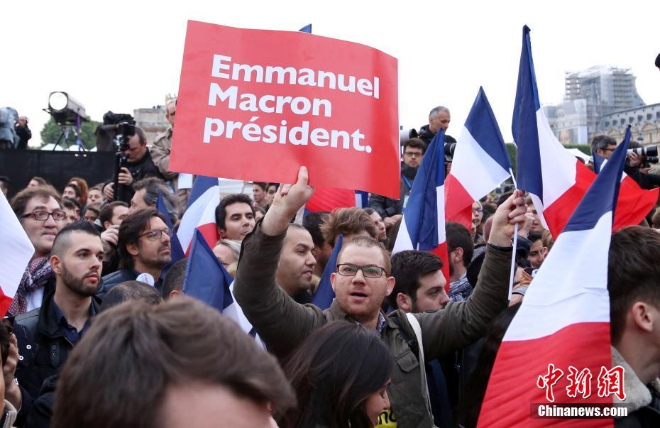 巴黎時間5月7日晚,法國總統(tǒng)選舉第二輪投票初步計票結(jié)果顯示,中間派獨立候選人、“前進”運動領(lǐng)導(dǎo)人埃馬紐埃爾·馬克龍以大幅優(yōu)勢擊敗極右翼政黨“國民陣線”候選人馬麗娜·勒龐。年僅39歲的馬克龍由此成為法國史上最年輕的總統(tǒng),也成為世界上最年輕的大國領(lǐng)導(dǎo)人。圖為馬克龍的支持者在得知馬克龍當選后歡呼。中新社記者 龍劍武 攝