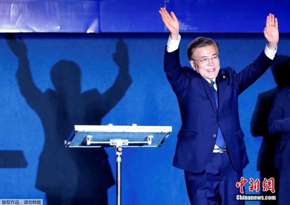 當(dāng)?shù)貢r(shí)間5月9日深夜,韓國(guó)第19屆總統(tǒng)選舉共同民主黨候選人文在寅及其競(jìng)選團(tuán)隊(duì)現(xiàn)身首爾光化門(mén)廣場(chǎng),發(fā)表“勝選演說(shuō)”,與支持民眾握手慶祝。據(jù)出口民調(diào)顯示,文在寅在當(dāng)日進(jìn)行的大選投票中以41.4%的支持率絕對(duì)優(yōu)勢(shì)勝選。在選舉管理委員會(huì)公布的大部分開(kāi)票結(jié)果中,文在寅得票率也遙遙領(lǐng)先,提前鎖定勝局。 中新社記者 吳旭 攝